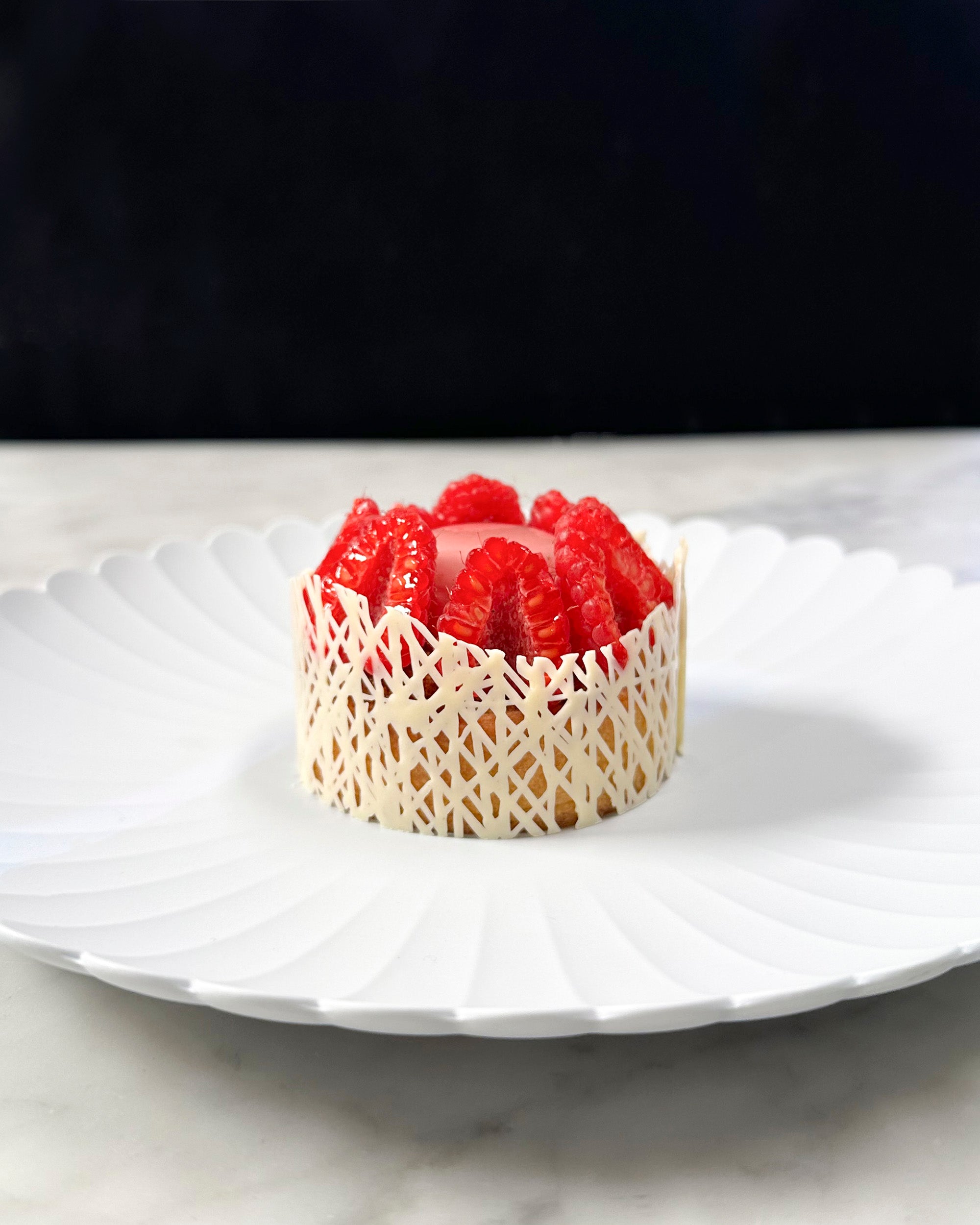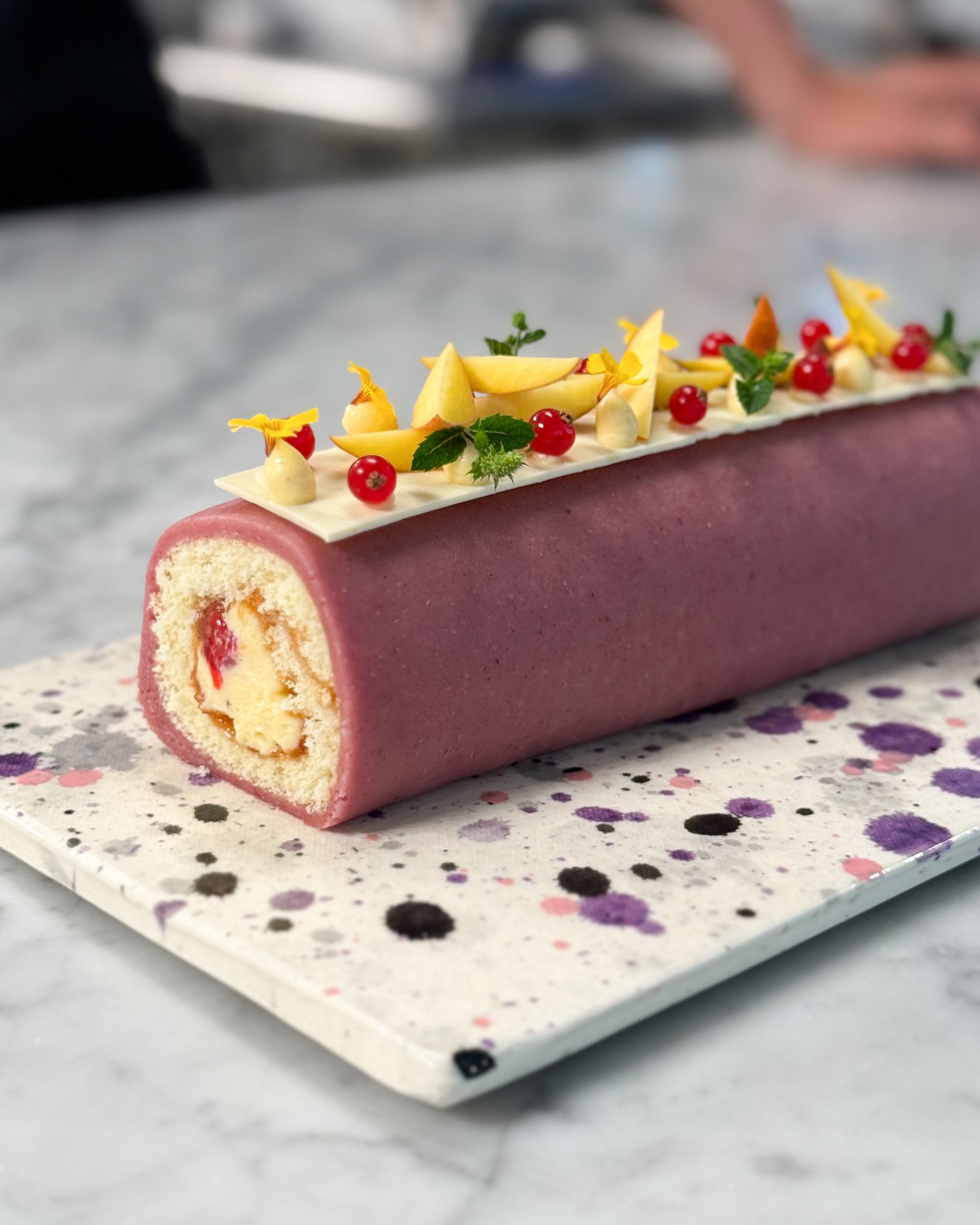 Af Summerbird Organic 26. September 2025Ferskenroulade med friske hindbær, White Vanilla-cremeux og hindbærmarcipan