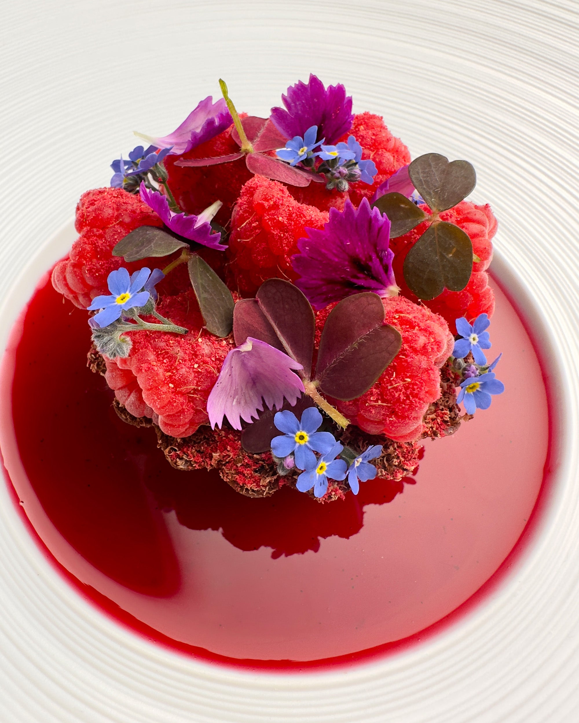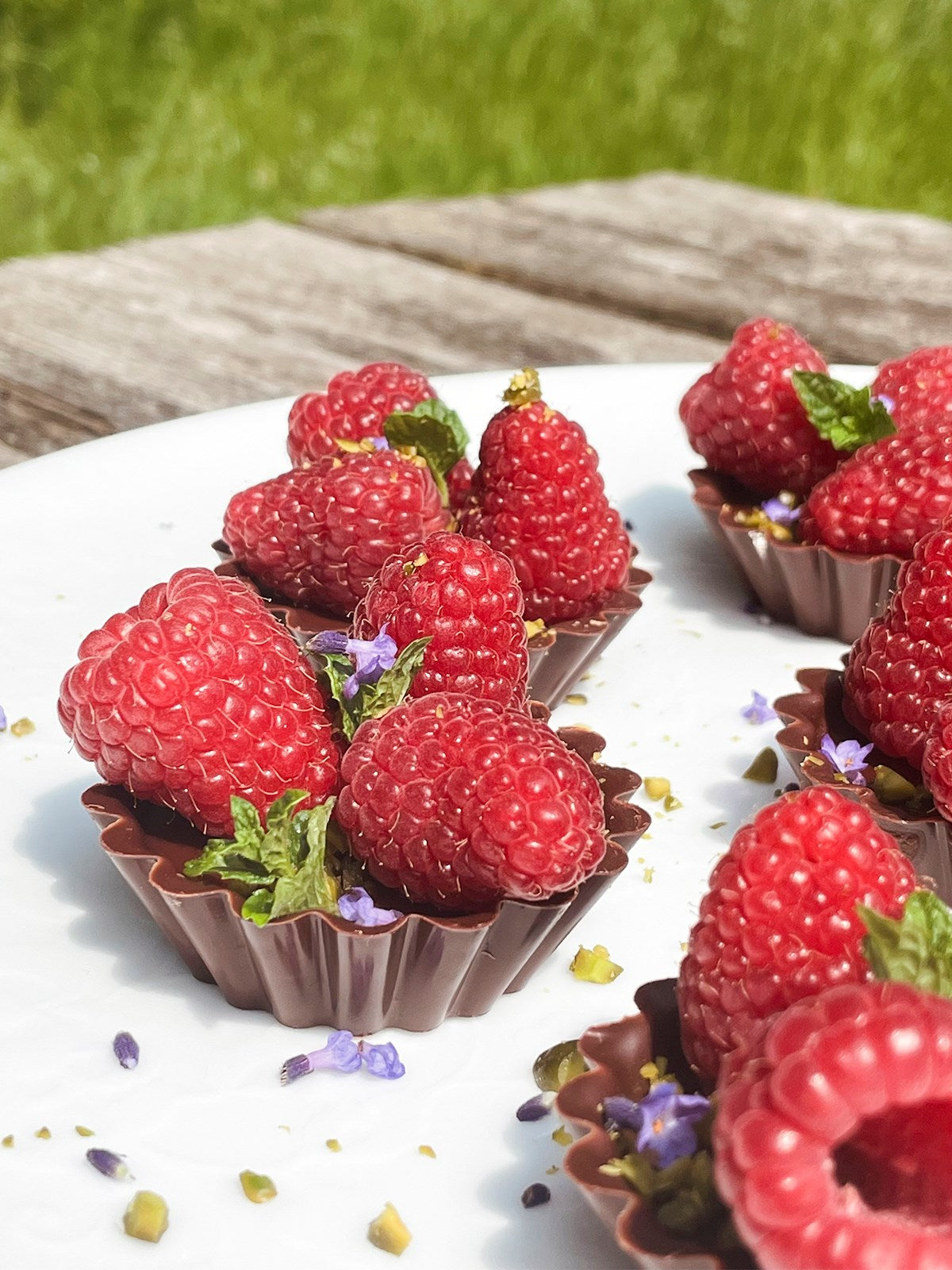 Af Summerbird Organic 30. Juni 2023Stracciatella istærte “Arriba Nacional 68%”. Hindbærcoulis & friske hindbær