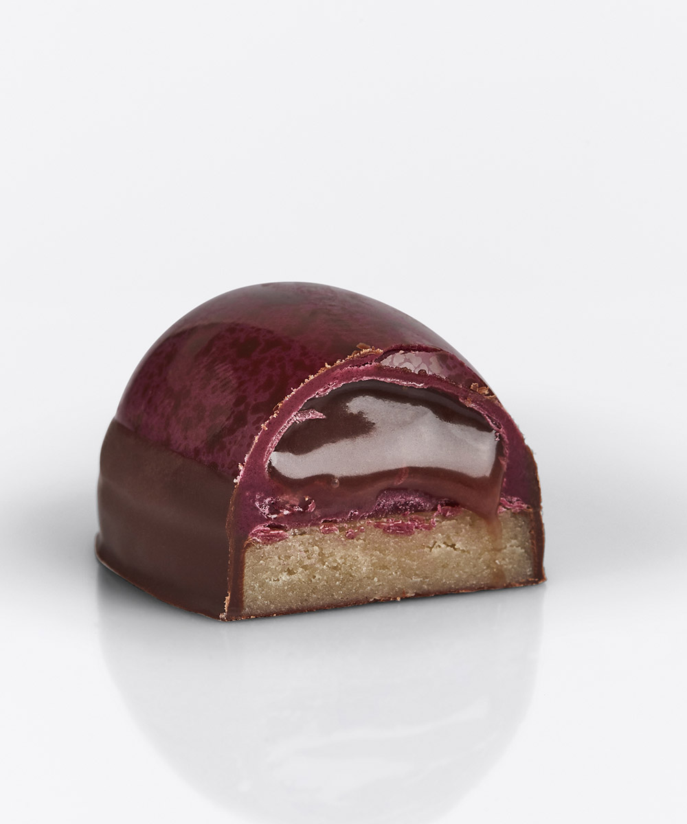 Bordeaux-chokolade, hindbær, karamel og marcipan