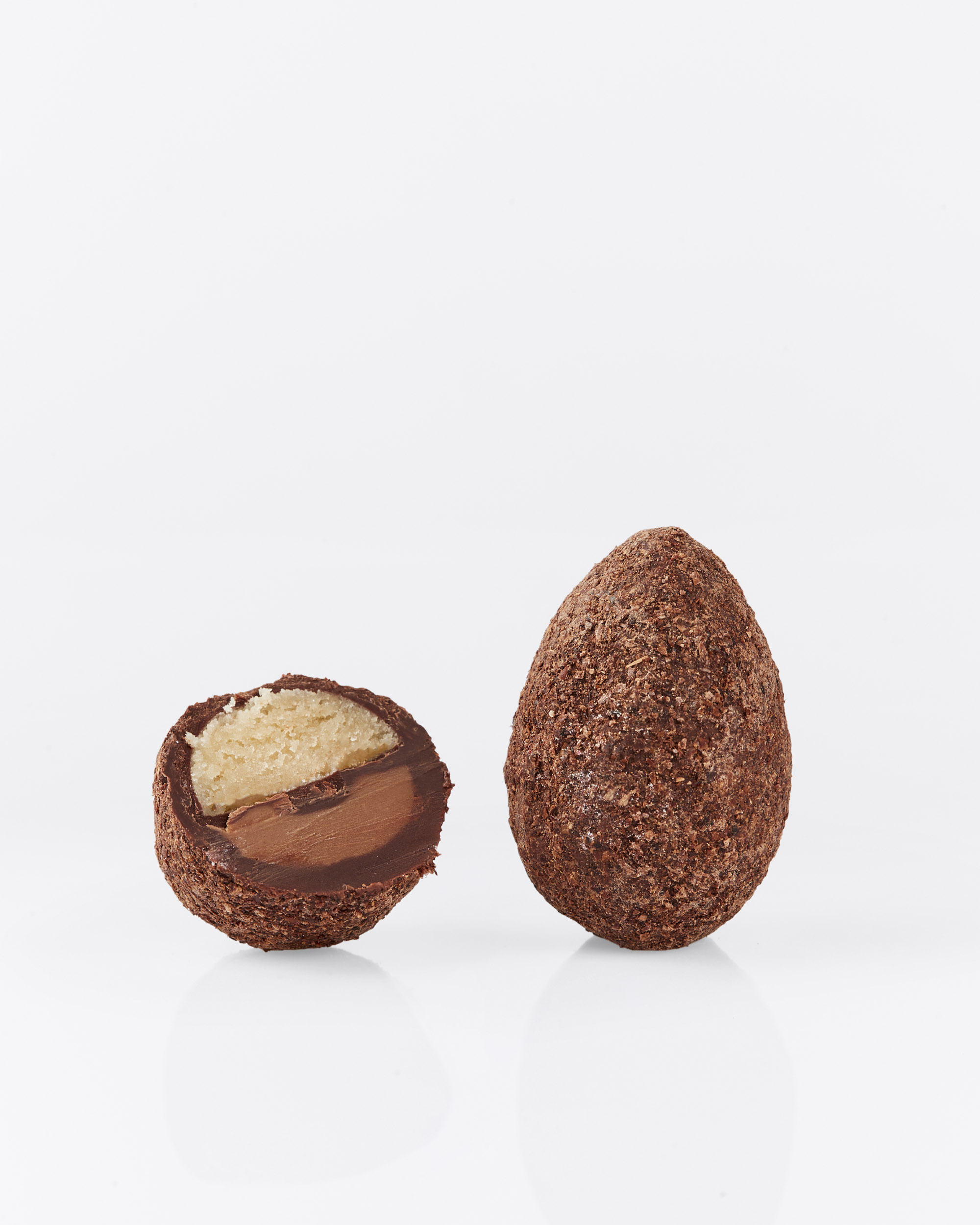 Mørk chokolade Amazonas 61 %, marcipan og praliné.