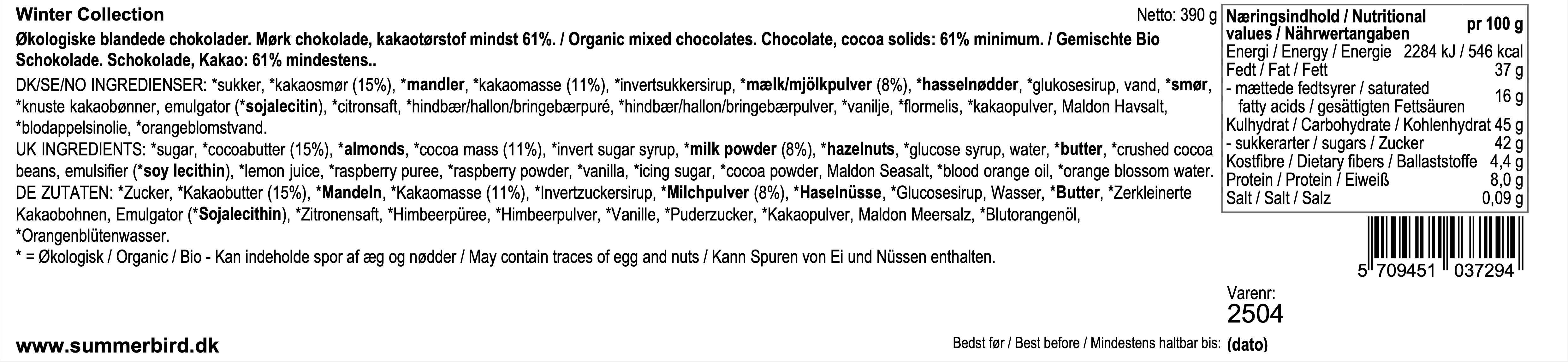 Mørk chokolade Amazonas 61 %, marcipan, hasselnød og grué